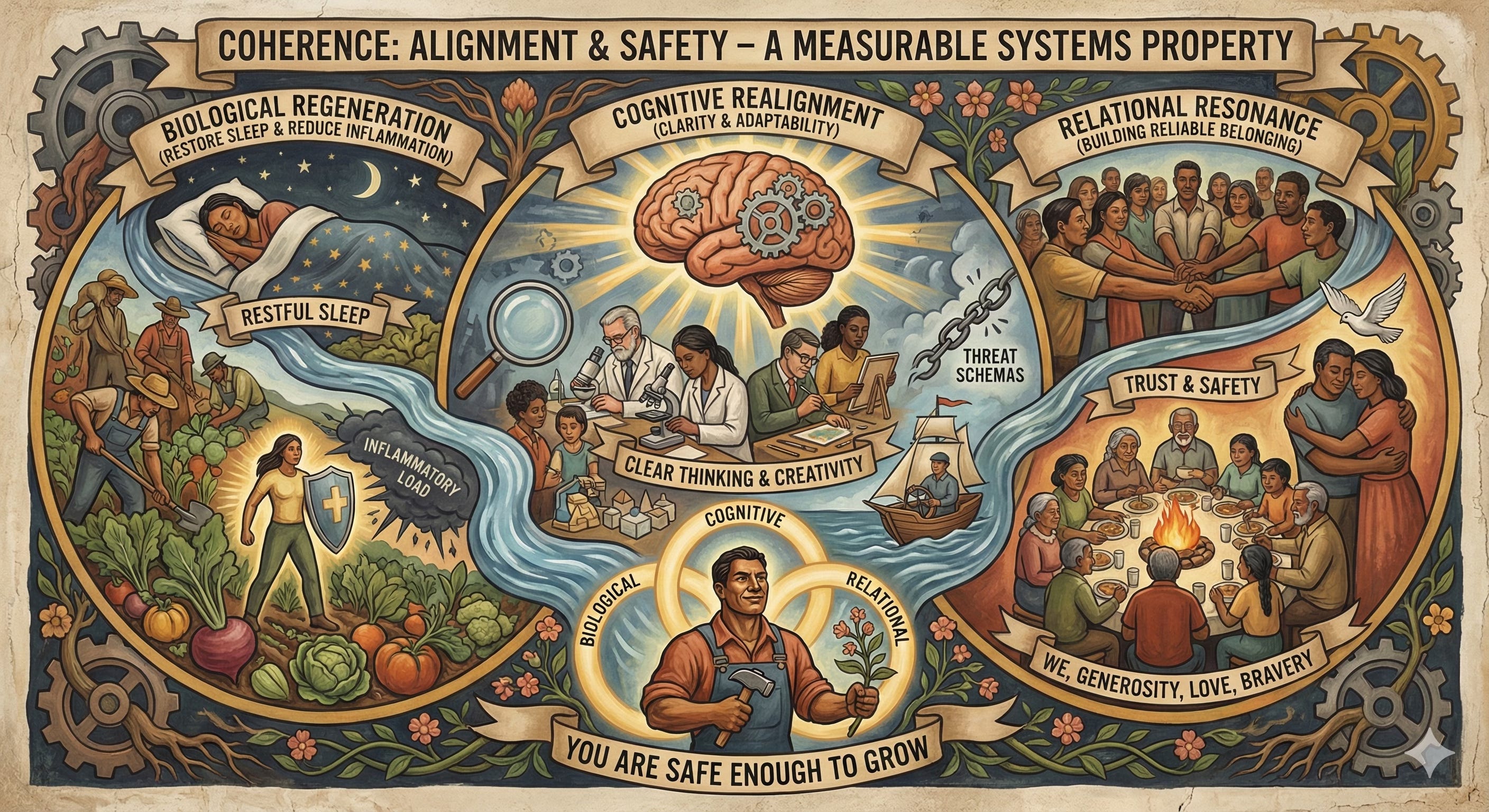 Coherence is not the absence of stimulation or emotion. It is alignment across biological, cognitive, and relational systems around a single message: